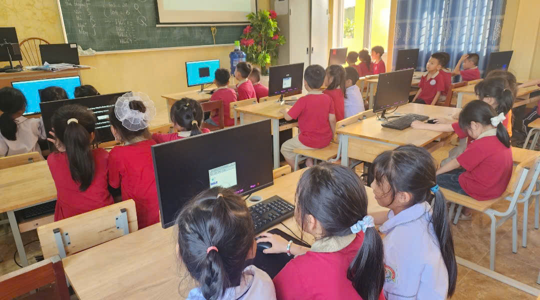 Vì vậy, việc dạy học môn tin học rất được nhà trường quan tâm, sát sao. Mỗi tiết học các em được sử dụng máy tính, làm quen với các trò chơi, phần mềm ứng dụng từ đó phát triển được kĩ năng sử dụng máy tính, nâng cao năng lực môn Tin của mình.