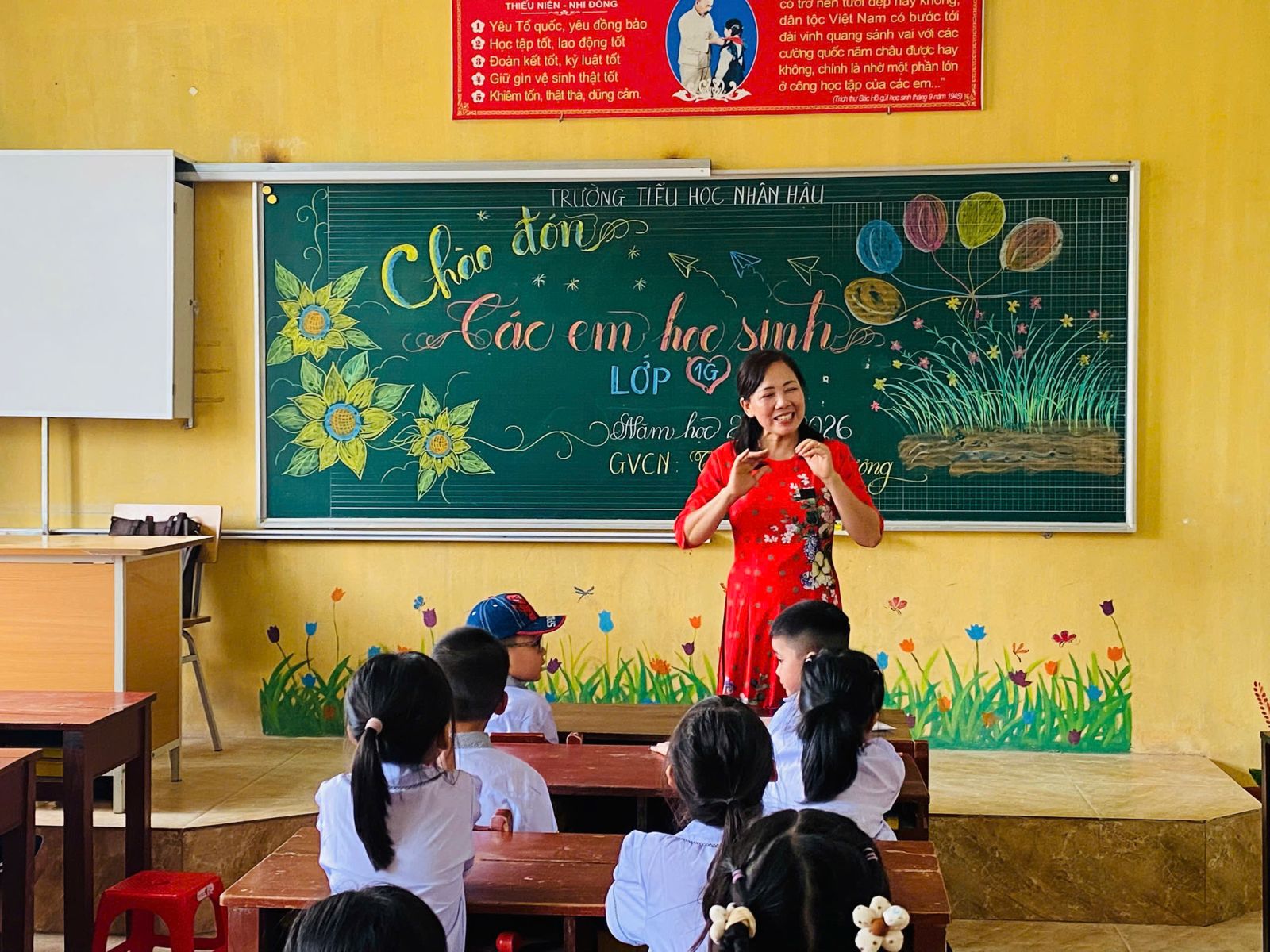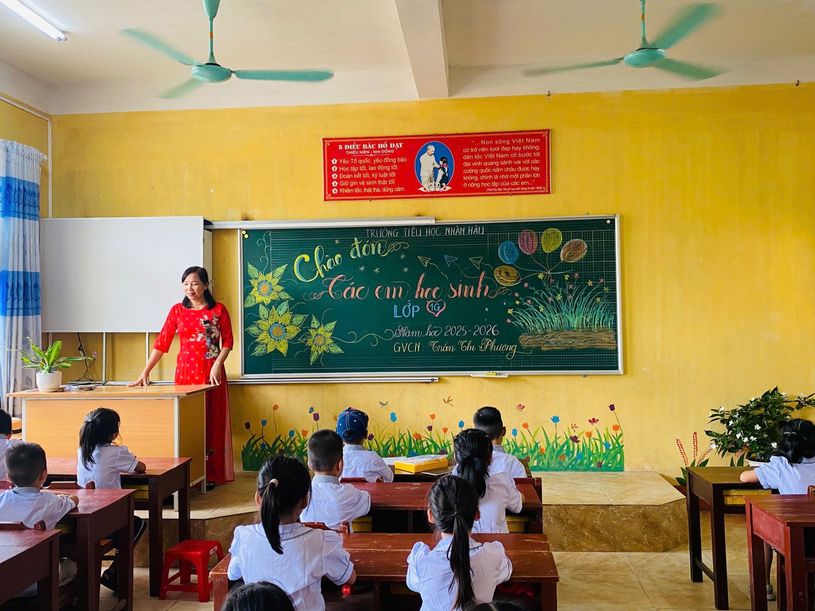 Năm học 2025-2026, Trường Tiểu học Nhân Hậu đón 198 học sinh lớp 1. Từ ngày 22/8, học sinh đã có những buổi học làm quen do giáo viên chủ nhiệm hướng dẫn.