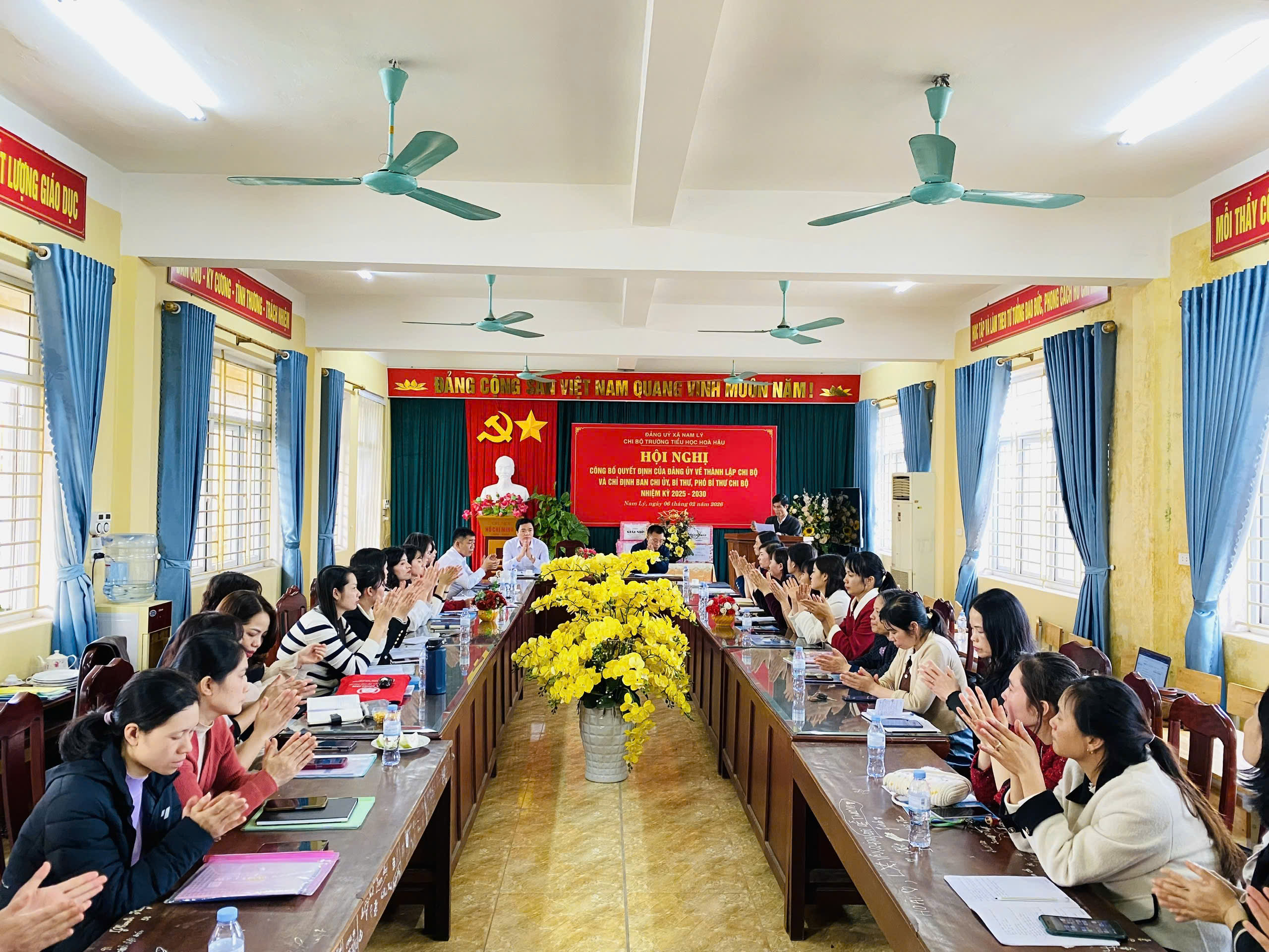Tại Hội nghị, đồng chí Trần Văn Thanh – Trưởng ban xây dựng Đảng ủy xã Nam Lý đã công bố các Quyết định của Đảng ủy trường Tiểu học Hòa Hậu: Quyết định Thành lập Chi bộ trường Tiểu học Hòa Hậu, gồm 33 đảng viên. Trong đó: