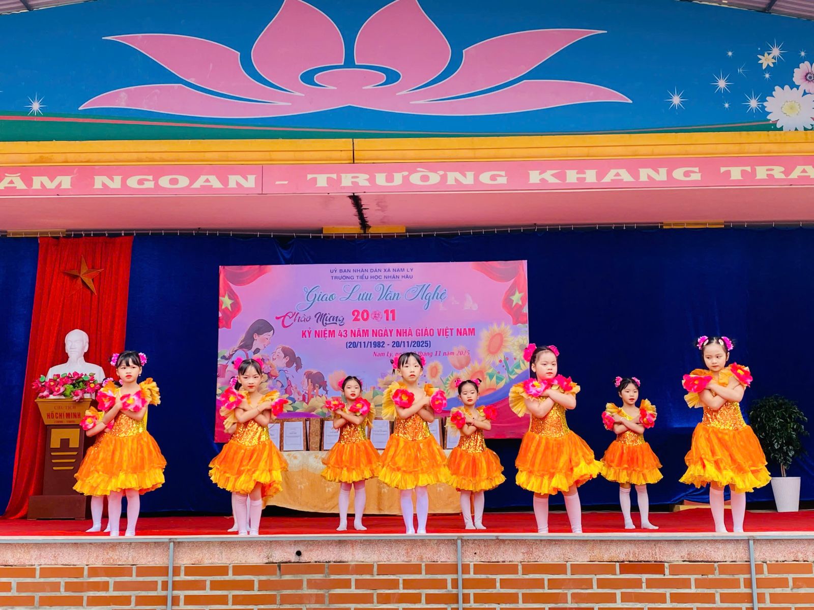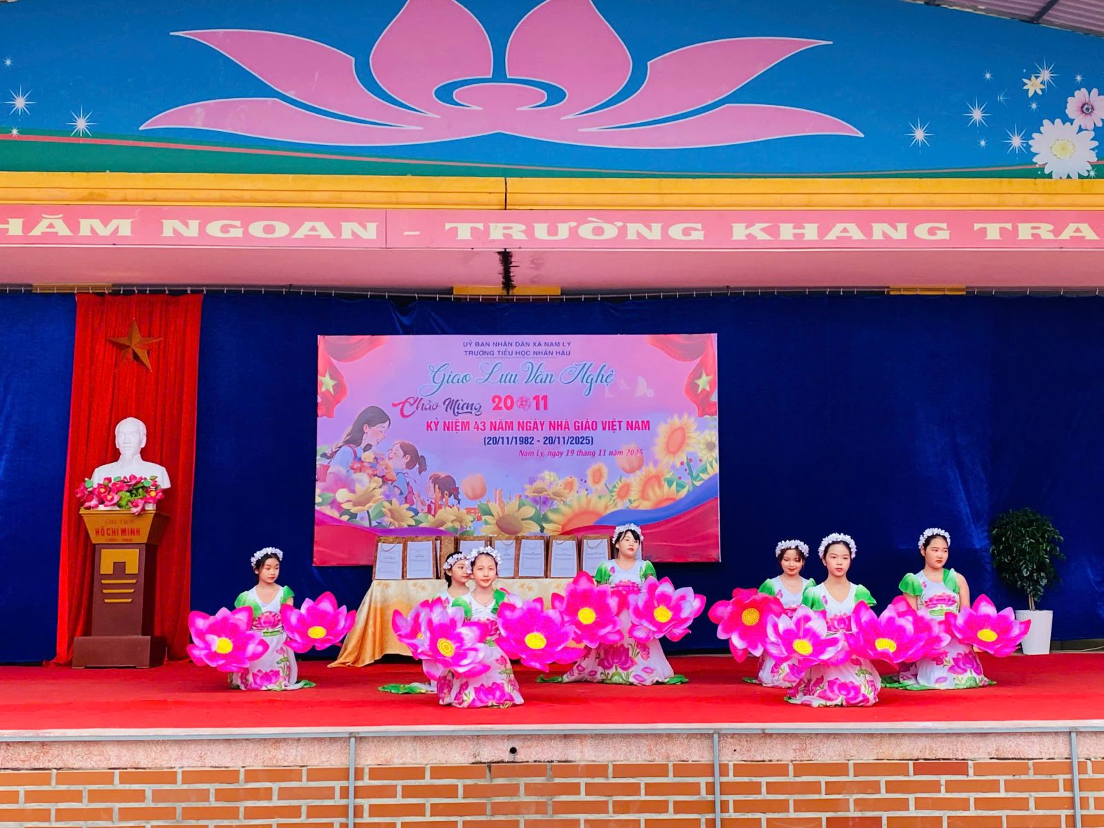 Thực hiện chỉ đạo về việc thực hiện các hoạt động kỷ niệm 43 năm ngày Nhà giáo Việt Nam (20/11/1982-20/11/2025); Chiều ngày 19 tháng 11 năm 2025, Trường Tiểu học Nhân Hậu đã tổ chức buổi tổ chức Liên hoan văn nghệ chào mừng Ngày Nhà giáo Việt Nam 20/11. Đây là một trong những hoạt động ý nghĩa nhất trong chuỗi phong trào tháng 11 – tháng tri ân thầy cô, góp phần tạo nên không khí phấn khởi, hoan hoan cho thầy và toàn trường.