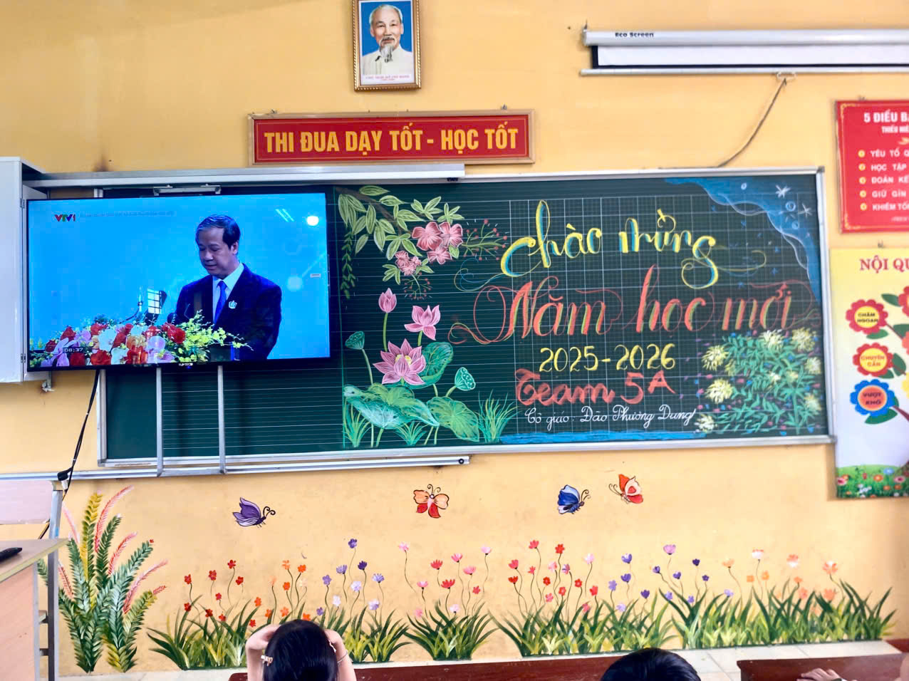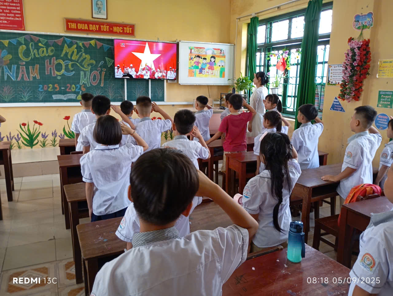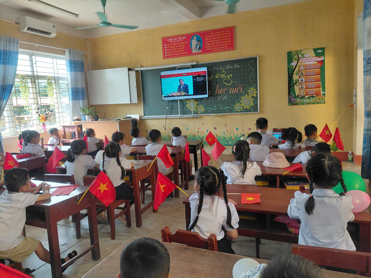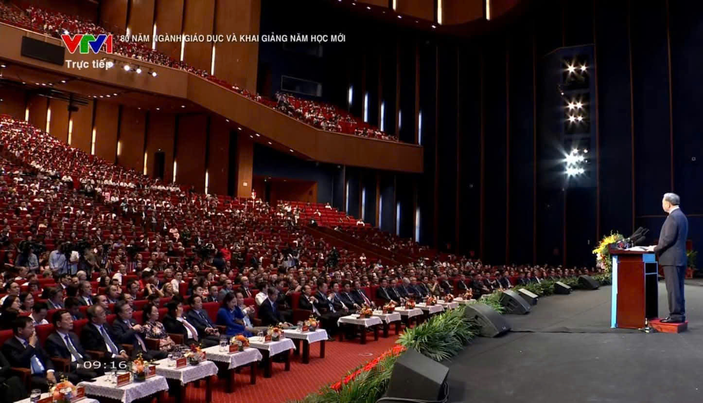 Đặc biệt, điểm nhấn quan trọng trong chương trình Lễ khai giảng năm nay là nội dung toàn thể thầy và trò nhà trường được cùng tham dự trực tuyến Lễ kỷ niệm 80 năm truyền thống ngành giáo dục và Khai giảng năm học mới 2025-2026 được tổ chức trọng thể tại Trung tâm Hội nghị Quốc gia Mỹ Đình.