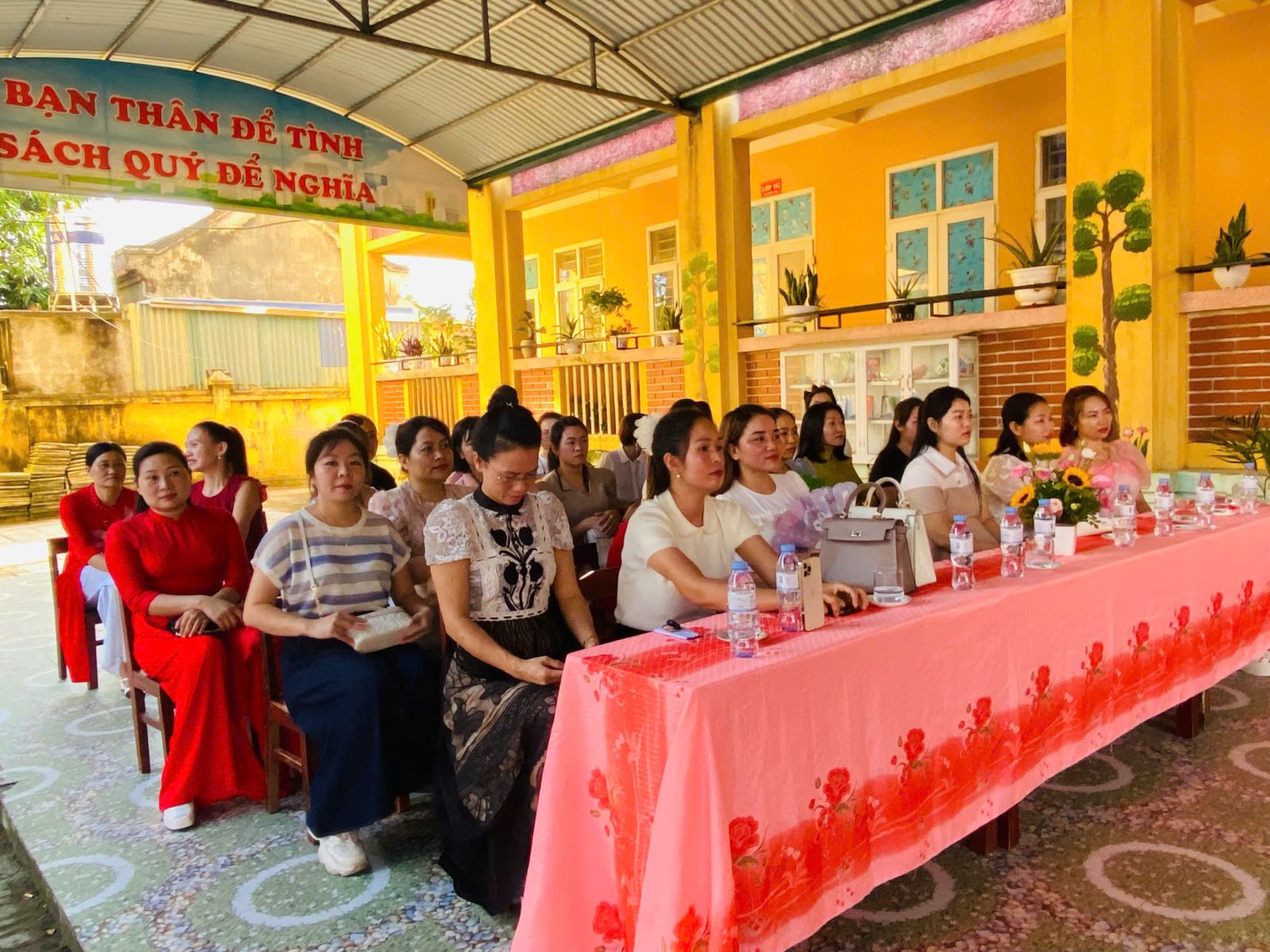 Đảng ủy, UBND, HĐND xã Nam Lý tặng hoa nhà trường