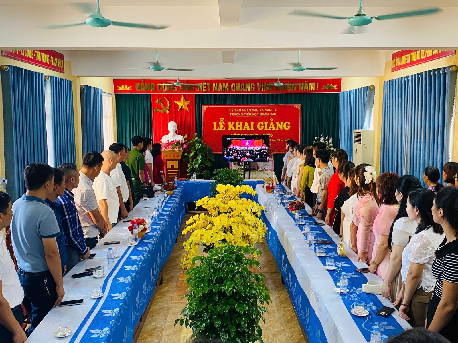 Sáng ngày 05/9/2025, trong không khí tưng bừng của Ngày hội toàn dân đưa trẻ đến trường, thầy và trò trường Tiểu học Nhân Hậu – xã Nam Lý -tỉnh Ninh Bình đã long trọng tổ chức Lễ khai giảng năm học mới 2025 -2026.