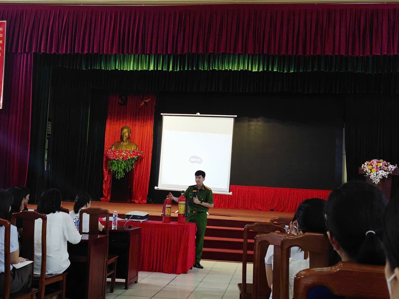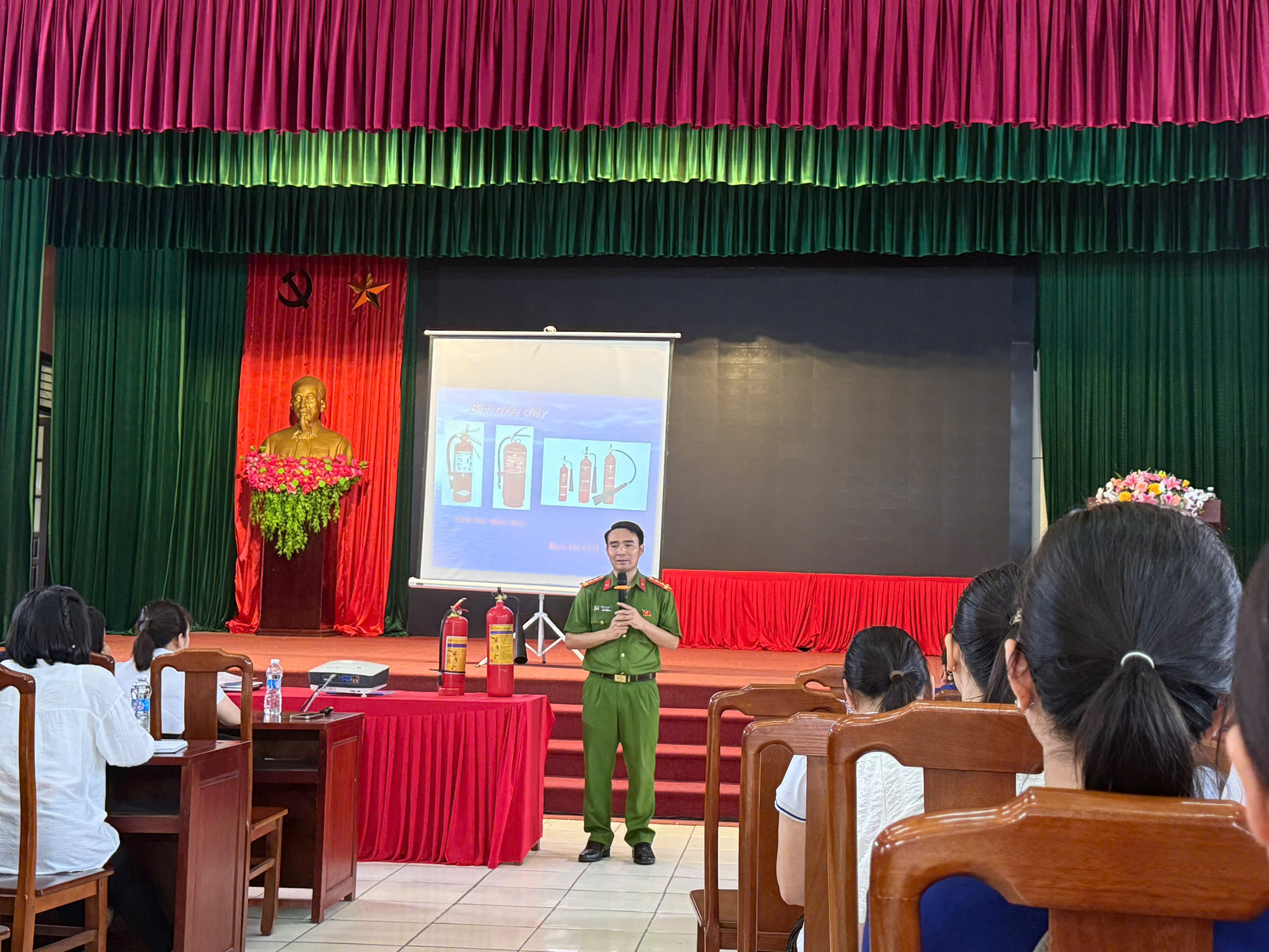 Sau phần lý thuyết, các học viên được hướng dẫn thực hành thao tác sử dụng, bảo quản và bảo dưỡng các trang thiết bị, phương tiện PCCC đã được trang bị tại cơ sở; thực hành sử dụng bình chữa cháy xách tay để dập tắt đám cháy giả định; luyện tập kỹ năng thoát nạn an toàn.