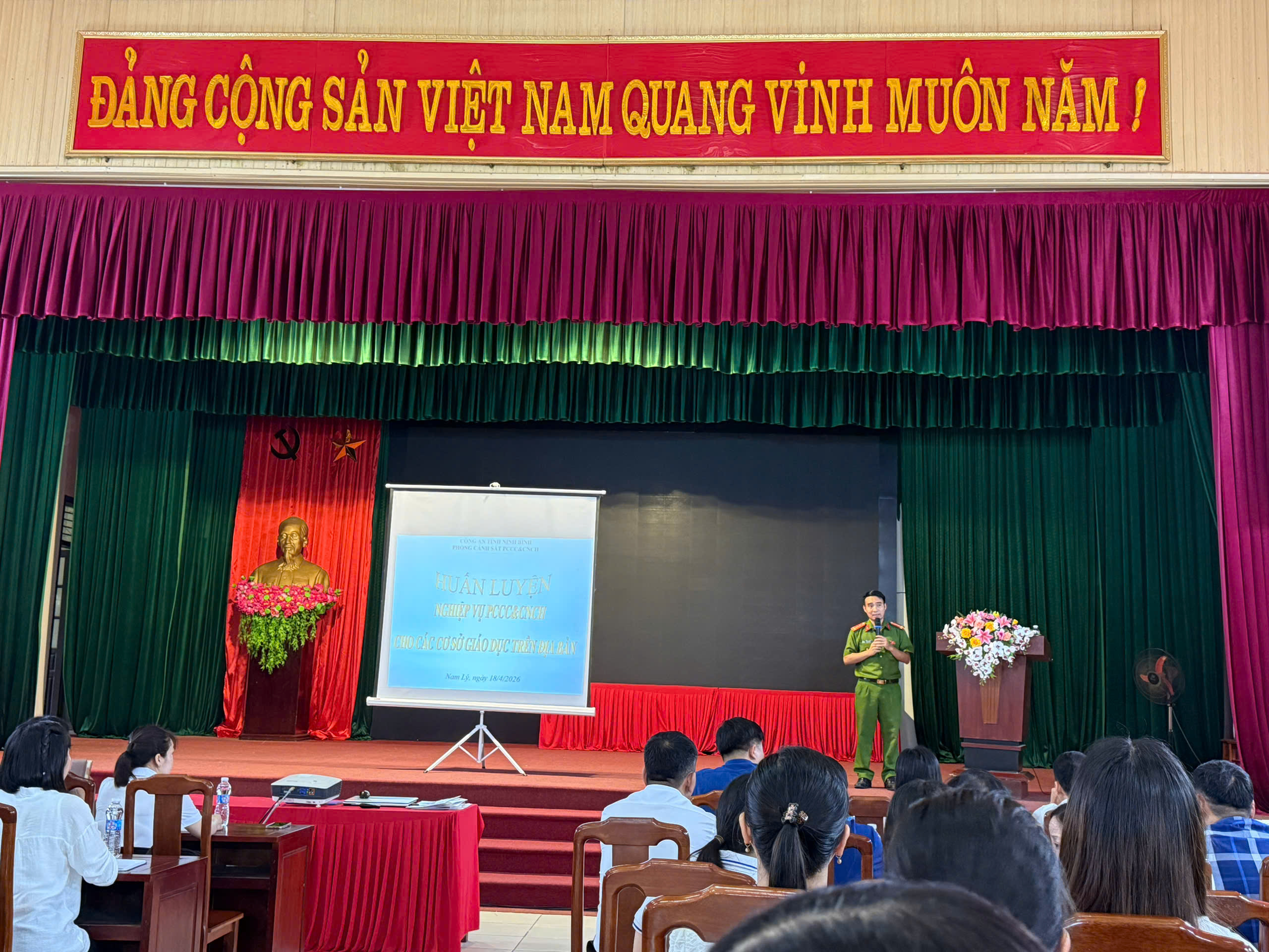 Sáng ngày 18/08/2026, Phòng cảnh sát PCCC và CNCH tỉnh Ninh Bình đã tổ chức lớp Huấn luyện PCCC và CNCH cho các cơ sở giáo dục trên địa bàn xã Nam Lý.