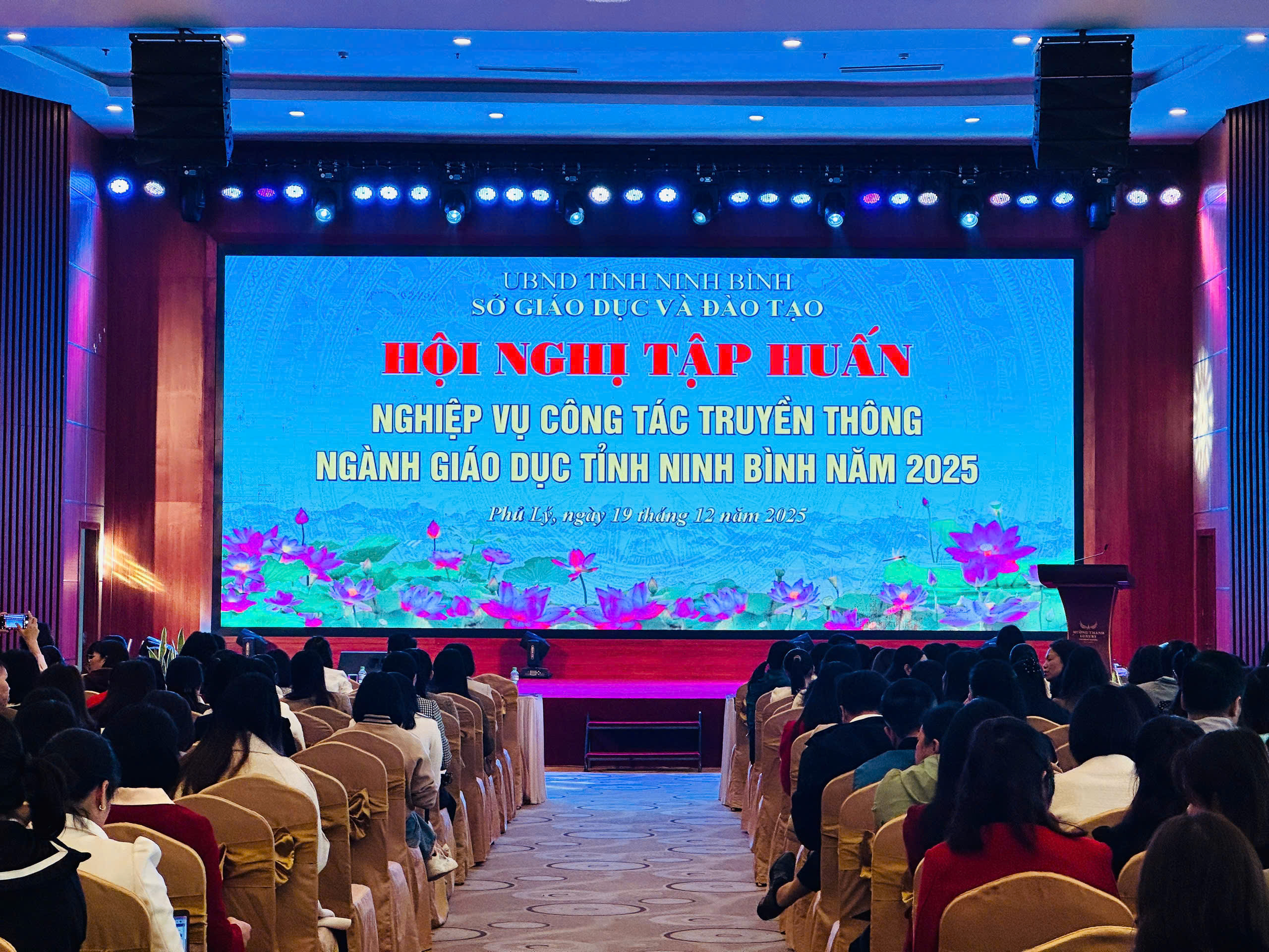 Ngày 19/12/2025, Hội nghị Tập huấn bồi dưỡng nghiệp vụ công tác truyền thông ngành Giáo dục năm 2025 đã được tổ chức trong thời gian 01 ngày, bắt đầu từ 8h00, tại Hội trường Khách sạn Mường Thanh Hà Nam, đường Lê Hoàn, phường Phủ Lý, tỉnh Ninh Bình.