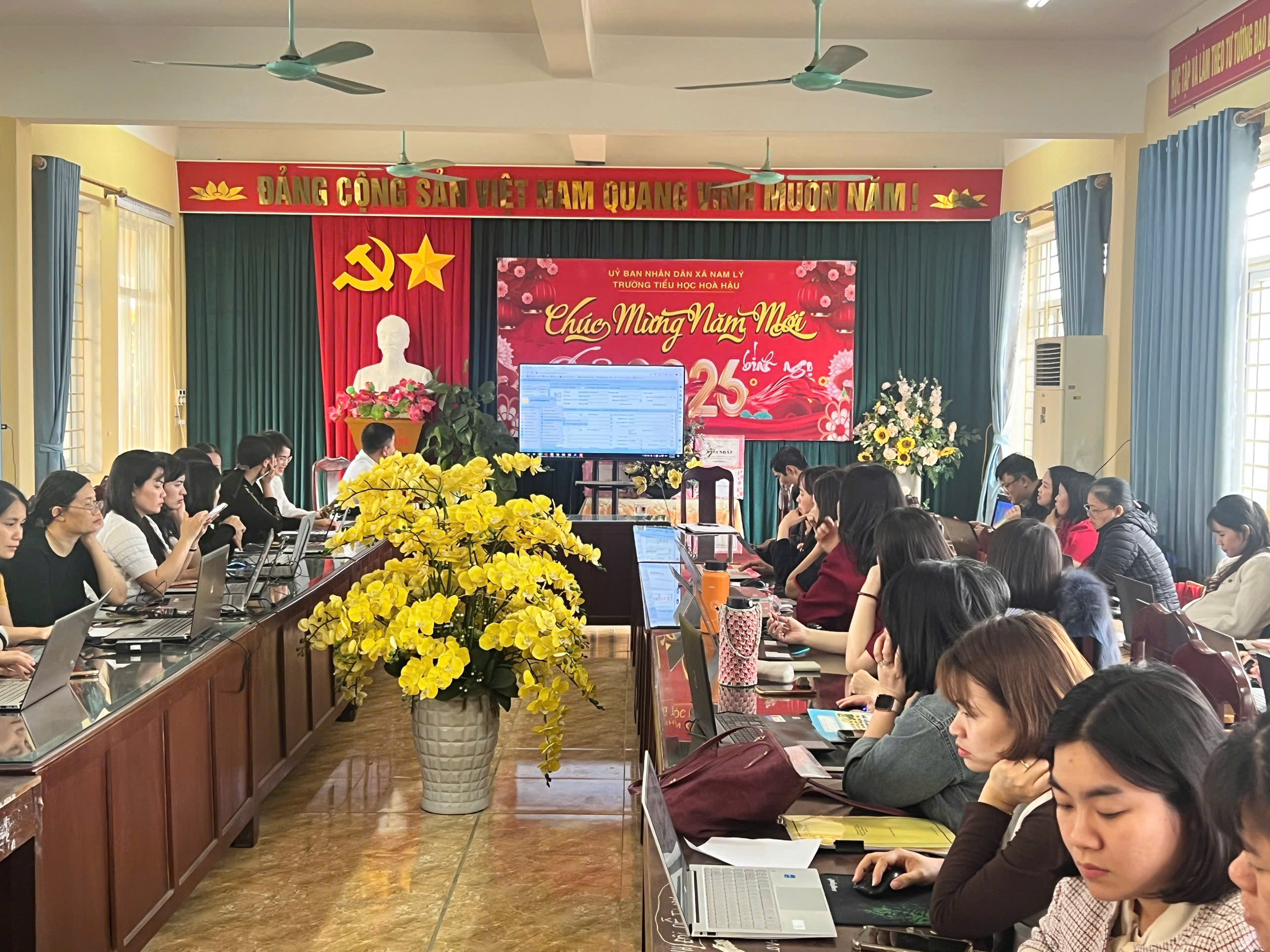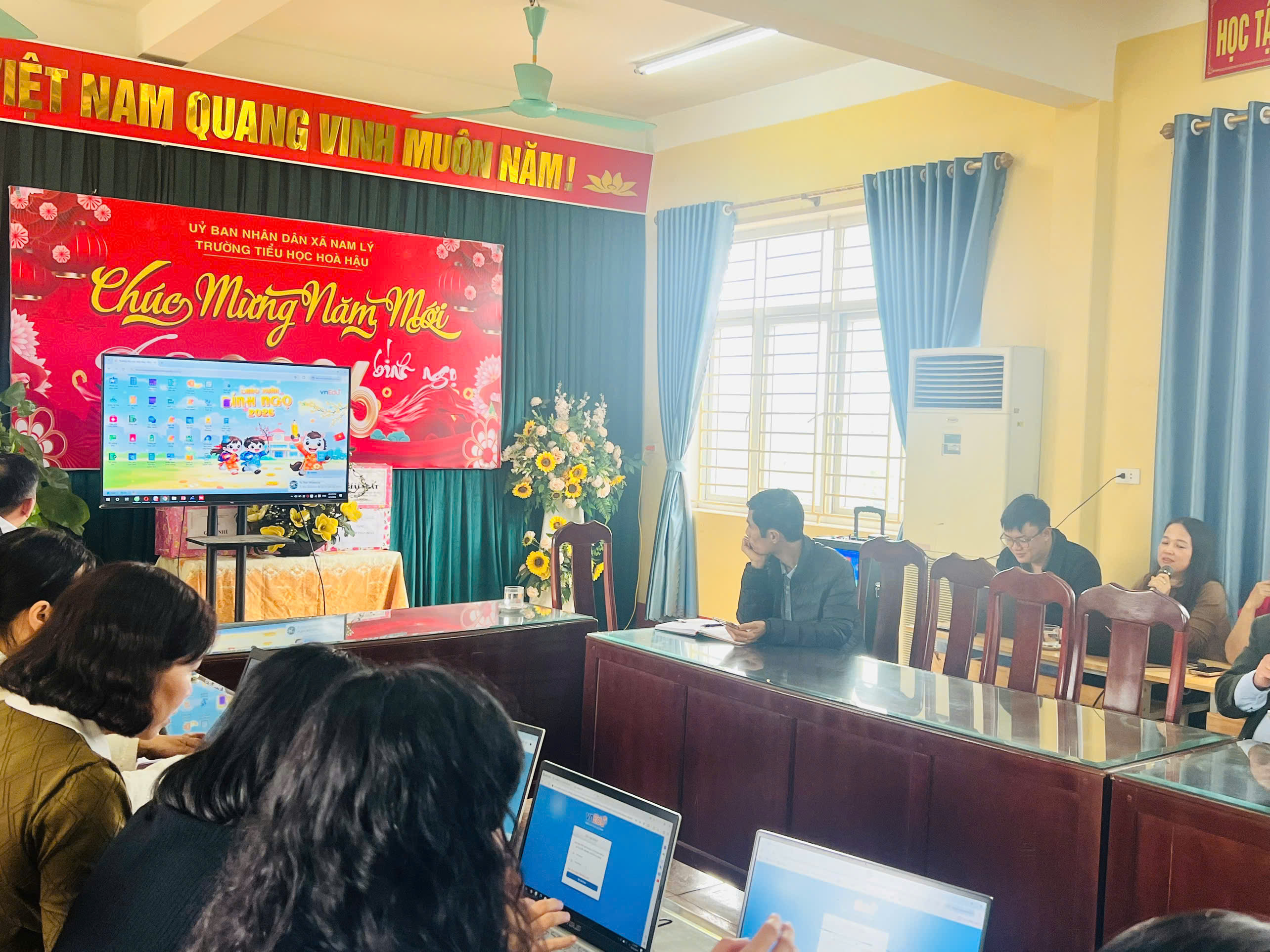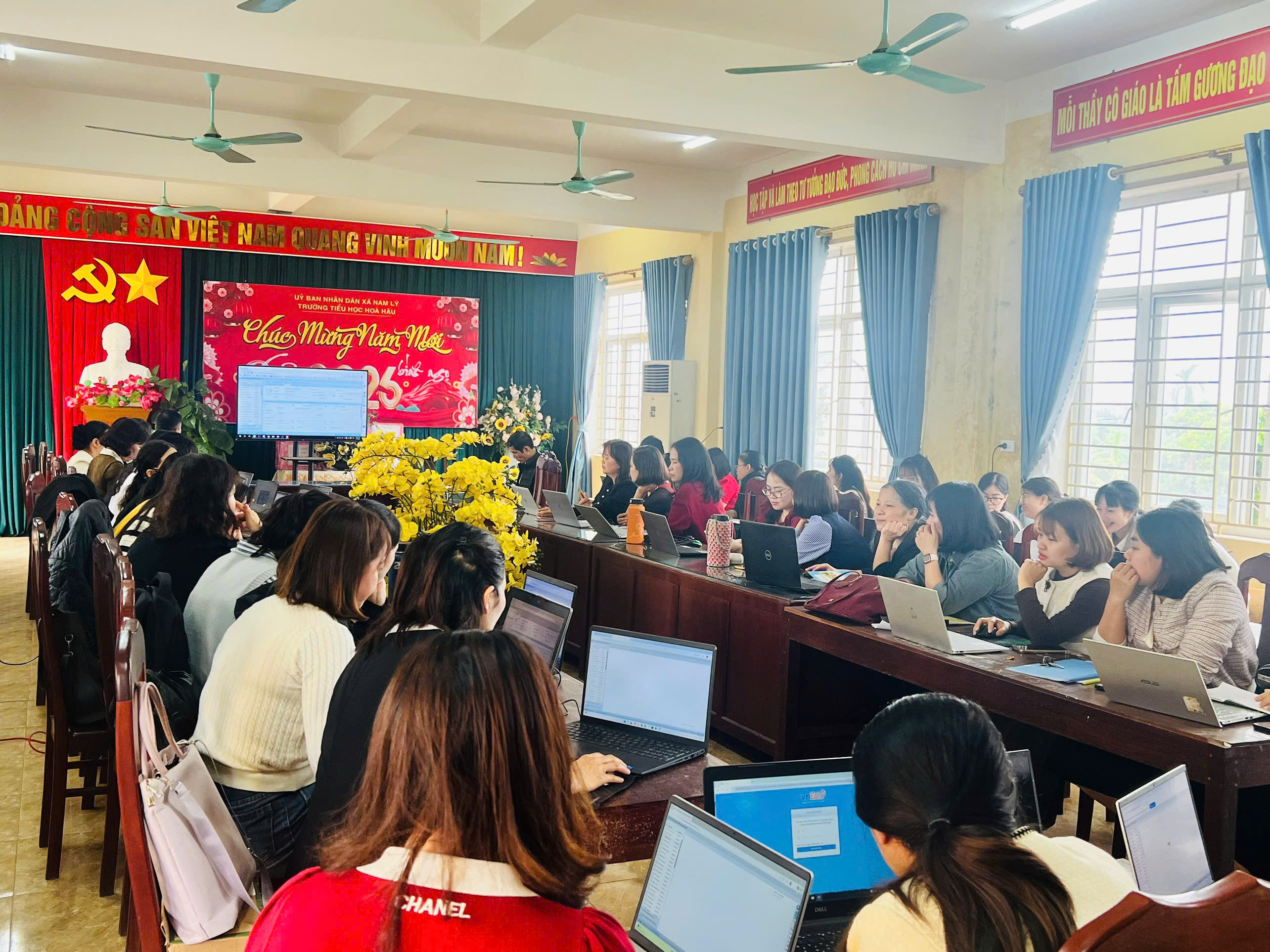 Thực hiện nhiệm vụ chuyển đổi số trong quản lý và dạy học năm học 2025–2026, chiều ngày 6/3/2026, Trường Tiểu học Hòa Hậu phối hợp với VNPT Ninh Bình tổ chức chương trình: “Tập huấn sử dụng phần mềm quản lý dạy học Vnedu ” dành cho toàn thể giáo viên nhà trường.
