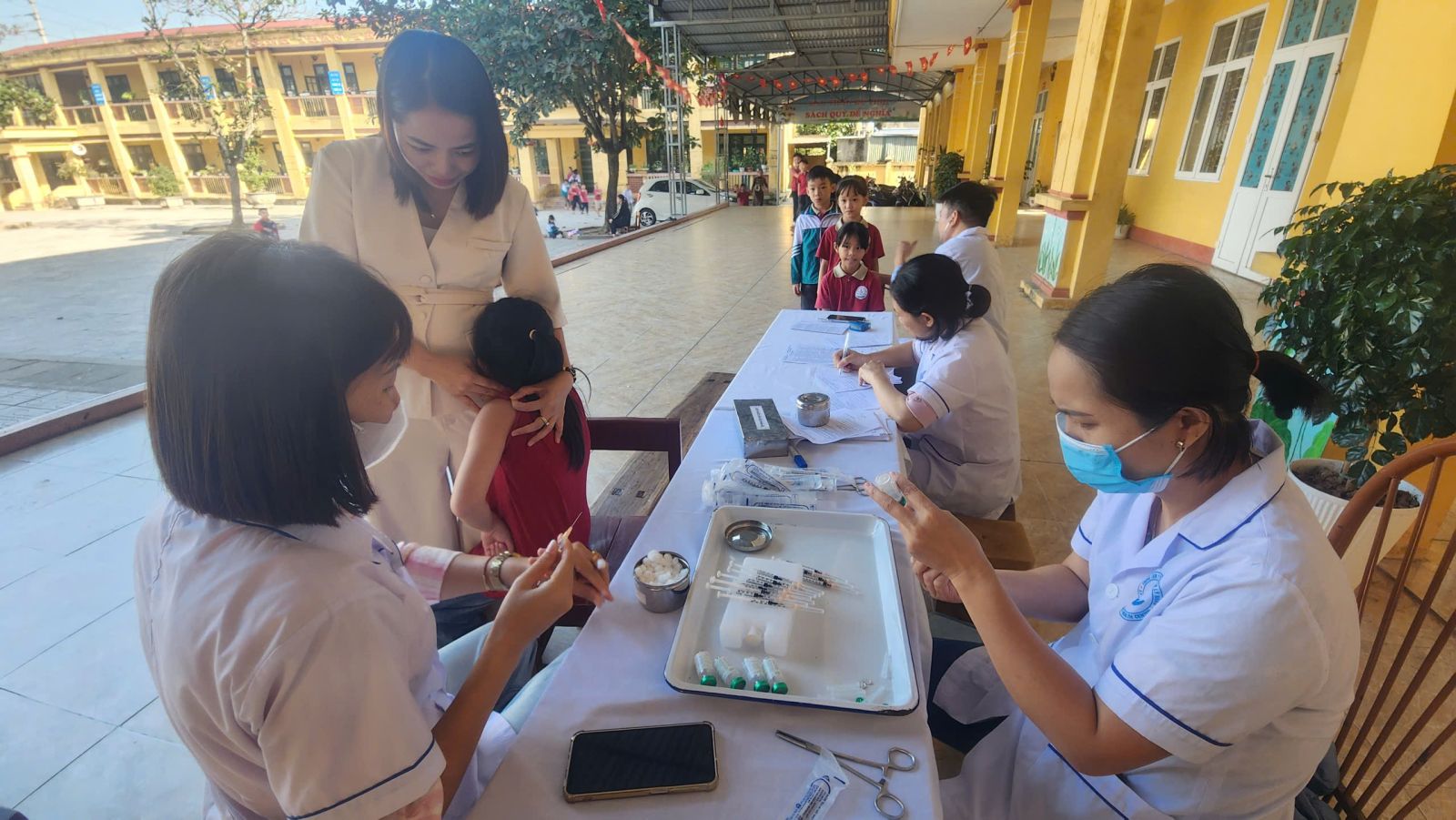 Sáng ngày 14/11/2025, trường Tiểu học Nhân Hậu phối hợp với trạm Y tế xã Nam Lý tổ chức tiêm vắc xin Uốn ván- Bạch hầu (Td) cho học sinh của trường.Cụ thể như sau: 1. Đối tượng được tiêm Trẻ 7 tuổi (sinh năm 2018).